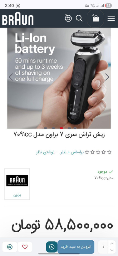 سلام و احترام این محصولی که خدمت شما عرضه شد جنس اصل اصل آلمان هستش و اینکه دلیل ارزون بودنش نداشتن کارتن و اینکه ما اینها رو بدون واسطه و بصورت مستقیم وارد میکنیم و به سود کم راضی هستیم عین همین جنس تو بازار ۴۸ الی ۵۸ میلیون تومنه در ضمن این ریش تراش هنوز پلمپه و روشن نشده جلو خریدار تست و تحویل میشه